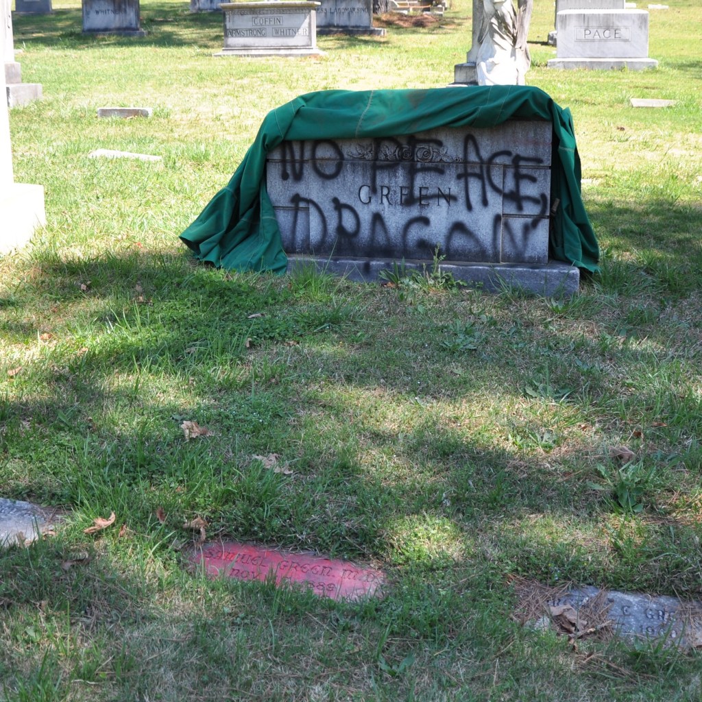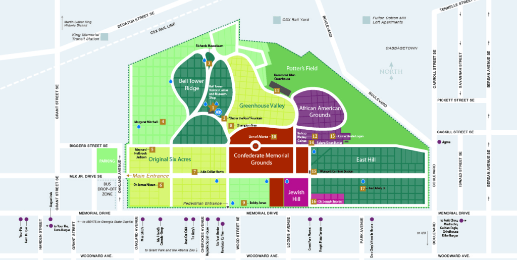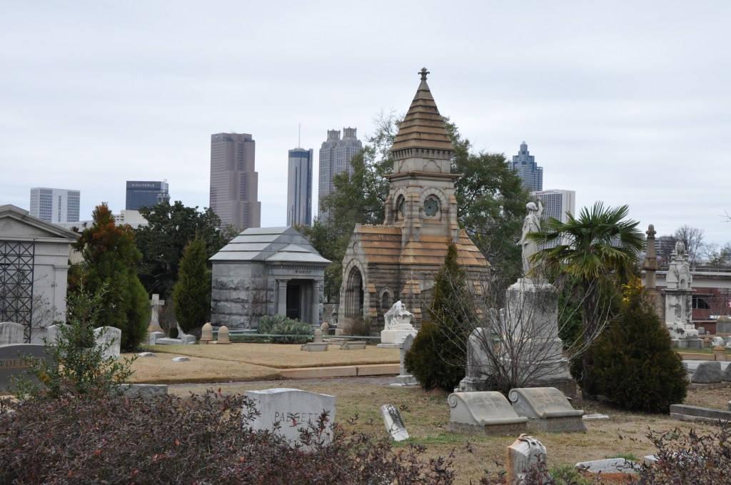 Oakland Cemetery is itself a cautionary tale of white supremacy. It is divided into sections, whites and honorary-whites taking the majority of the space with sections designated for those of African American and Jewish descent. In the original Jewish section, the markers are close together, barely leaving room to walk between graves. The expanded section is better, but separate is still not equal. When the cemetery was created in 1850, African Americans were an enslaved people and buried in what is known as “slave square” at the back of the original six acres. When the cemetery expanded after the Civil War, these graves were in the center, so they moved the individuals to the new Potter’s Field, again at the back of the cemetery, keeping no records and placing no markers. They simply tilled the earth at the original site and sold the plots to white families.