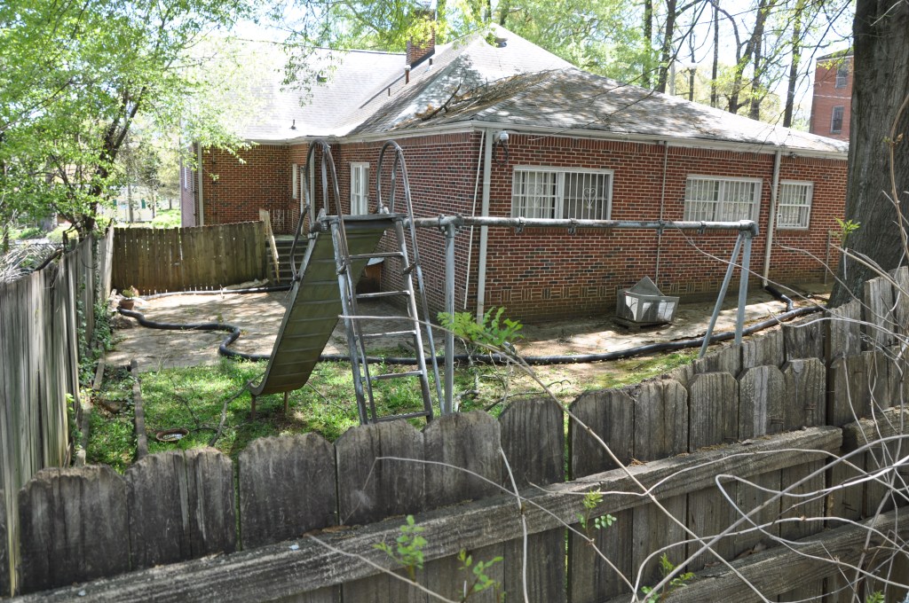 The backyard seems small, but secure with its wooden privacy fence. The old swing set dominates the space and I wonder why it remains. The children would have outgrown it decades earlier, so I imagine it carried a sentimental value. Perhaps Dr. King picked it out or the assembly was a favorite family memory. Raised beds and a small shed were installed around it, and portions of the back and side yards were paved to control runoff, but the swing set remained. Maybe Mrs. King liked to remember her husband playing with their small children or perhaps this is the only place the children have actual memories of their father. Its presence lets me imagine Dr. King in ways his larger-than-life legacy does not.